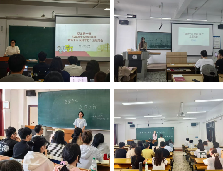 为进一步增强全体学生的防诈骗意识,提升识骗、防骗、拒骗的能力,9月10日—20日期间,马克思主义学院组织各年级各班级开展“防范于心,反诈于行”主题班会,活动围绕“观影学习、答题巩固、案例剖析、交流讨论”四大核心环节有序推进,为构建平安和谐的校园环境打下坚实基础。本次班会由各年级辅导员、各班班长主持,学院全体本科生、研究生参加。
