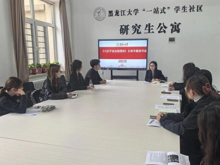 为深入学习贯彻习近平新时代中国特色社会主义思想,推动理论学习在青年学子中走深走实,充分发挥“一站式”学生社区的思政育人功能,马克思主义学院于10月18日走进“一站式”学生社区开展《习近平谈治国理政》第五卷专题读书会。本次读书会由2025级辅导员张立新主持,学院2025年下半年党校培训班全体学员参加。