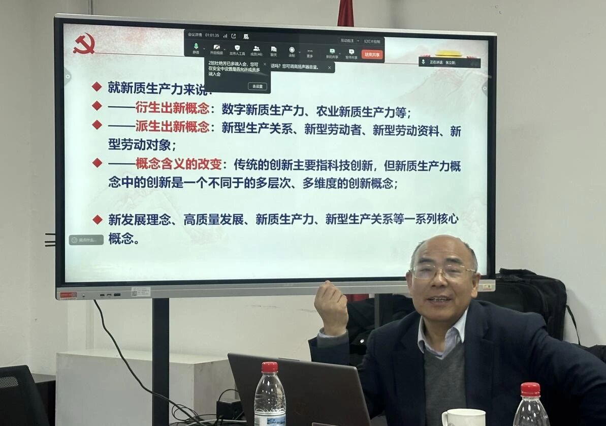在讲座上,洪晓楠教授围绕“标识性原创性概念与习近平新时代中国特色社会主义思想理论创新”这一主题,深入探讨了党的理论创新成果的学理价值与实践意义。他系统阐释了“人民至上”“新质生产力”“中国式现代化”等七大核心命题的理论内涵,从多重视角揭示了原创性概念在构建中国特色哲学社会科学中的重要作用。讲座强调,要立足新时代的历史方位,深刻把握理论创新的内在规律,在理论与实践的结合中深化对党的创新理论的理解。讲座为推进相关学术研究提供了思想启迪,对促进理论创新与实践发展的良性互动具有重要指导价值。