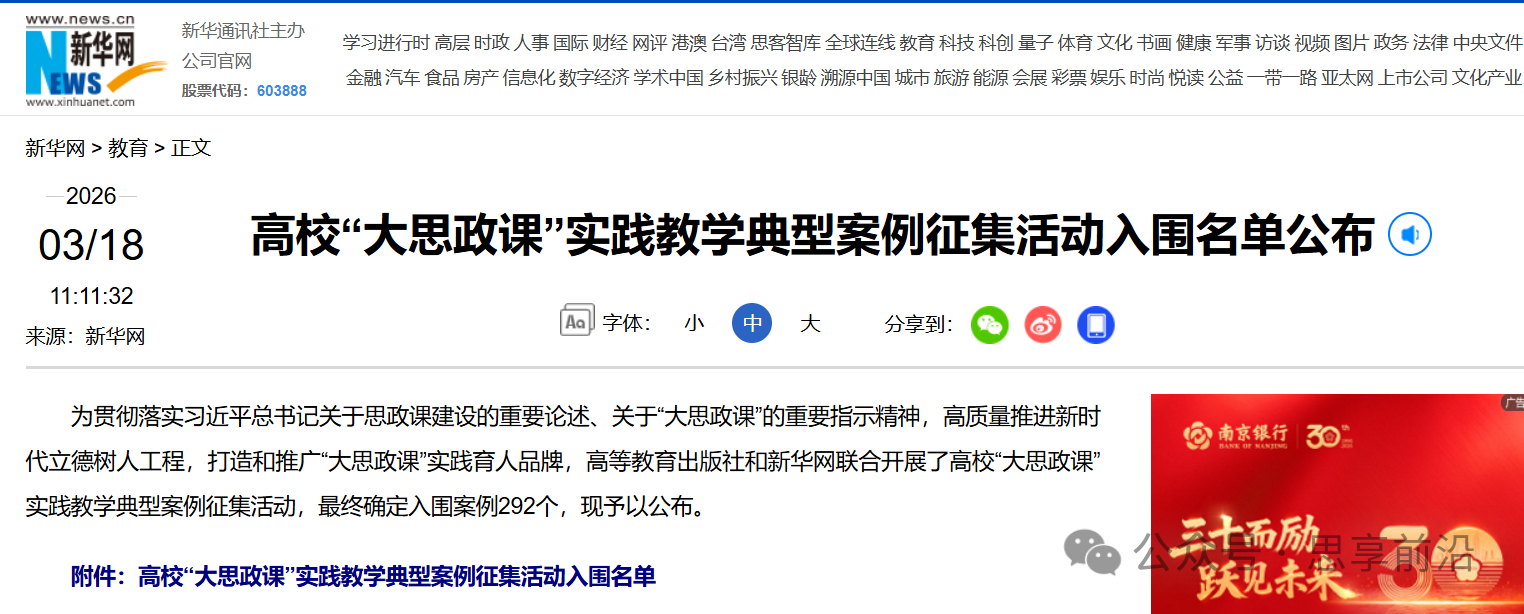 学校党委始终高度重视思政课教学质量提升及实践教学改革创新,成立以学校党委书记、校长为组长的学校思政课建设领导小组,马克思主义学院主管校领导亲自带领学院谋篇布局,学院党委坚持将思政课内涵式建设与高质量发展作为中心工作。近年来,学院运用教育部“大思政课”结对共建项目,打造黑大特色龙课;强化思政课课程建设,首获国家级一流本科课程;锻造思政课教师队伍,取得国家级教学展示活动一等奖的突破。本次曲亮老师团队,在荣获省“大思政课”实践教学精品课程基础上,经反复打磨,从全国众多高校申报案例中脱颖而出,成功入选国家级思政课教学案例,标志着学院在思政课教学成果领域再次取得“国字头”突破。下一步,学院将继续深化思政课教学改革创新,高水平开展实践教学活动,为培养堪当民族复兴大任的时代新人贡献力量。(马克思主义学院供稿)