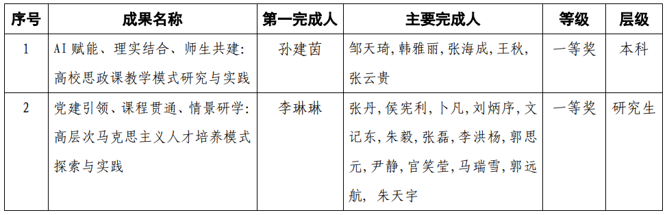 近年来,我院在教研成果领域不断实现“零的突破”,本次获奖,是我院继首获国家级一流本科课程、国家级教学展示活动一等奖及全国“大思政课”实践教学典型案例以来,取得本科、研究生两项省级教学成果一等奖的全新突破。下一步,我院将以此次获奖为契机,充分发挥获奖成果的示范辐射与引领推广效应,持续深化本科及研究生教学综合改革,为本科、研究生思政课教学改革提供源源不断的智力支持!(马克思主义学院供稿)