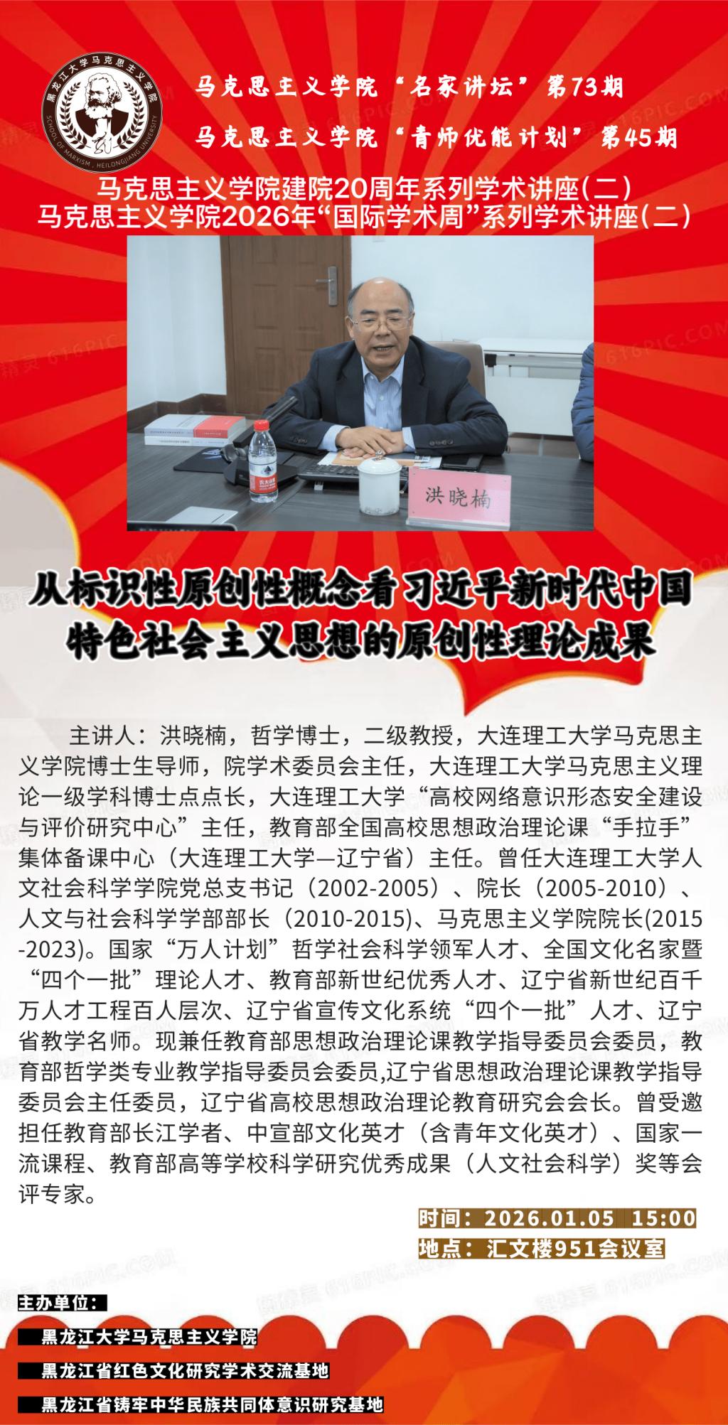 马克思主义学院“从标识性原创性概念看习近平新时代中国特色社会主义思想的原创性理论成果”讲座预告