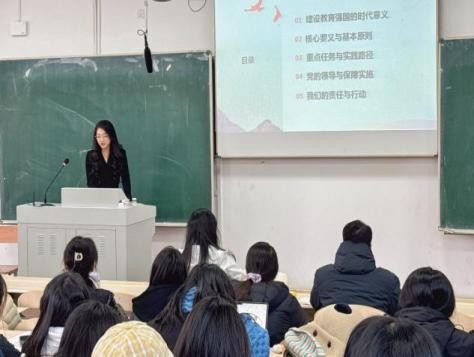 本期知识讲座聚焦为党育人、为国育才核心使命,以“双向引导”为抓手,围绕国家战略与青年成长展开学习。学院团委书记宫笑莹围绕《教育强国建设规划纲要》,向全体同学解读“时代新人”培养坐标,结合学院人才培养特色与学科建设优势,为学生成长发展精准锚定方向;团委副书记张立新带领学生深入“一站式”学生社区开展《习近平谈治国理政》第五卷专题读书会,帮助同学们在体系化研读中廓清中国式现代化的历史逻辑与时代方位。