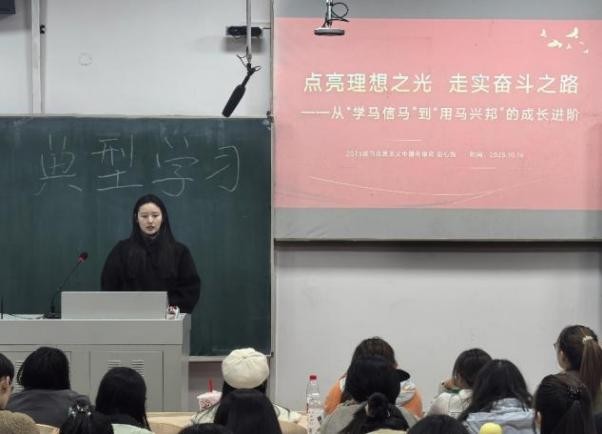 2023级研究生党员、连续两年研究生国家奖学金获得者逄玉寒、赵心悦分别以“在不确定中寻找锚点”、“点亮理想之光,走实奋斗之路”为题进行朋辈经验分享,介绍“四锚点”就业观与“三步走”科研规划。二人用自身鲜活经历,诠释“学马、信马、讲马、用马”的成长进阶,为全体同学树立可学可做的榜样,引导同学们将个人发展融入党和国家事业大局。