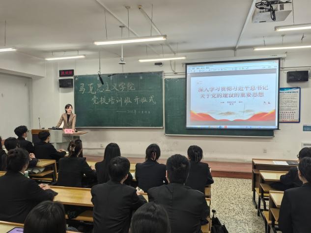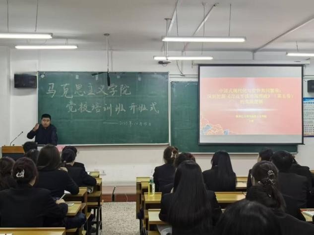 为强化学生党务干部和学生党员的担当作为意识,增强党性观念,提升党员发展对象和入党积极分子的思想素养,提高政治站位,马克思主义学院于2025年10月15日至25日期间顺利举办第二期党校培训班。本期培训以“理论滋养初心、实践淬炼使命”为主线,设置“集中授课—典型教学—视听学习—知识讲座—交流研讨—实践体验”六大模块,学生党务干部、校第46期预备党员培训班参训学员、发展对象、入党积极分子近百名学生参加培训。