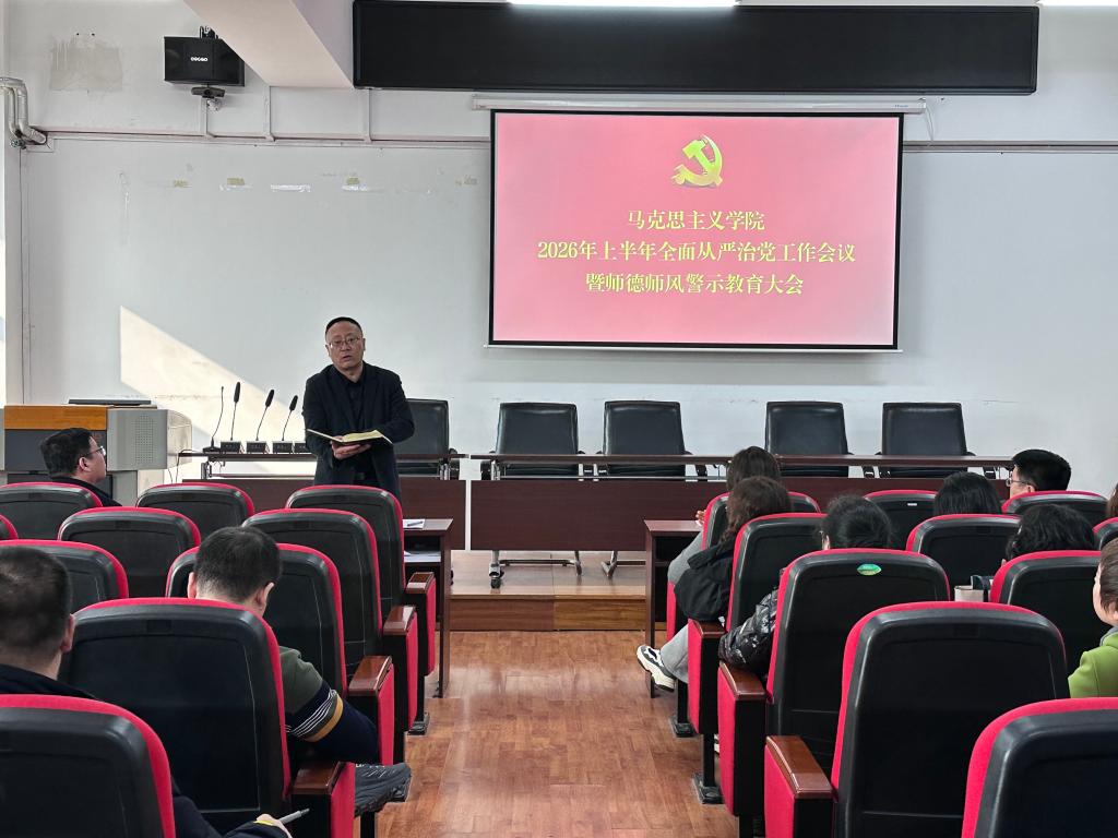 为深入贯彻落实学校全面从严治党工作要求,3月20日马克思主义学院召开2026年全面从严治党工作会议暨师德师风警示教育大会。会议由学院党委书记张丹主持,学院领导班子成员、全体教职工参加会议。